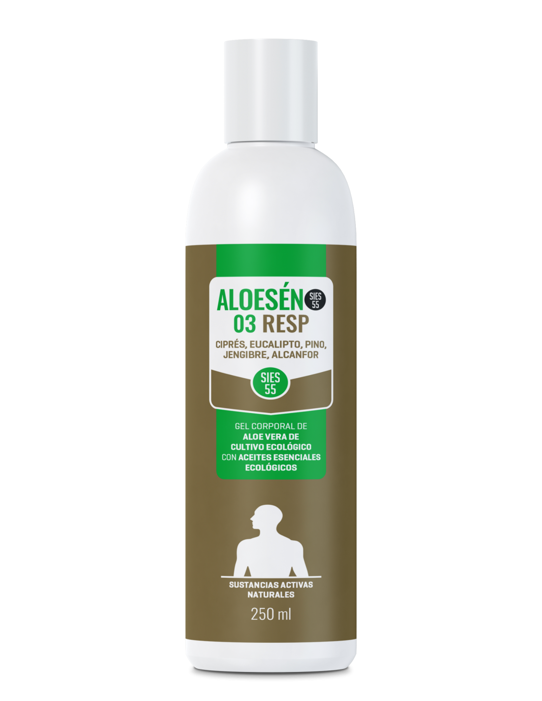 Aloesen 03 RESP es un gel de aplicación tópica procedente de Aloe Vera ecológico extra (más de 5 años) procesado en frío para que no pierda sus propiedades, conteniendo gran cantidad de principios activos, sales orgánicas, vitaminas, enzimas y aminoácidos. Posee un gran poder hidratante, regenerador y estimulante de la síntesis de proteínas, del colágeno y de la elastina. Se le han añadido una variedad de aceites esenciales también ecológicos, específicos y exclusivos, que gracias al poder saponificador del Aloe vera (favorece la penetración en la piel de las sustancias añadidas) se consiguen unos resultados rápidos y efectivos gracias a la sinergia de todos sus componentes.